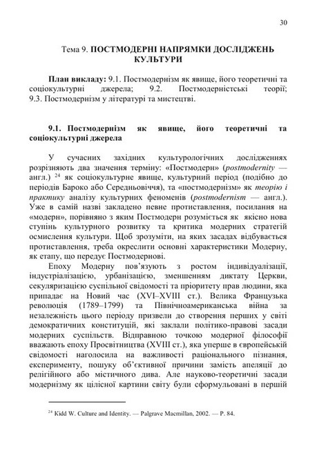 У пропонованому посібнику з сучасних позицій висвітлюються основні проблеми культурології. Особливу увагу приділено новітнім перспективним напрямкам культурологічної думки — «новій культурній історії», меморіальній культурології, постмодернізмові, ґендерним дослідженням, постколоніальним студіям, мультикультуралістичним підходам, теоріям гегемонії і теоріям меншин, індології.