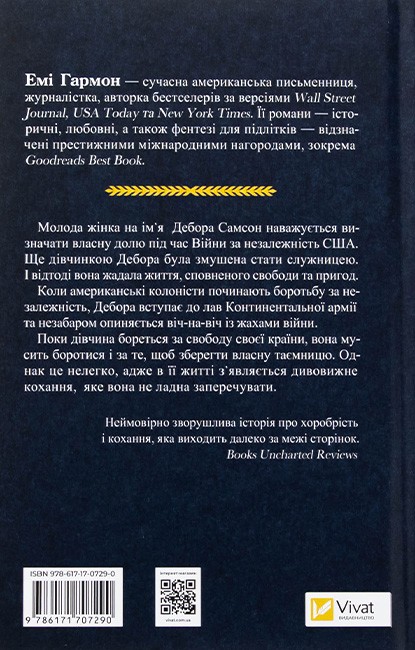 Є книги, які залишають слід у серці назавжди. Роман «Дівчина на ім’я Самсон» – саме такий. Це історія про сміливість, самопожертву і прагнення свободи. Головна героїня, юна Дебора Самсон, наважується на немислиме: під час війни за незалежність Америки вона перевдягається чоловіком і йде до війська. Перед вами не лише сюжет про битви, а прониклива подорож у світ жінки, яка бореться за право бути собою.