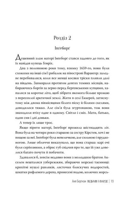 «Відьми з Варде» — це потужний і атмосферний роман, що переносить читача у XVII століття, коли страх і забобони ставали вироком для багатьох жінок. На тлі суворої Норвегії розгортається історія про хоробрість, сестринство і боротьбу за право жити вільно. Це книга, де магія переплітається з реальністю, а сила жіночого голосу протистоїть жорстокості світу.