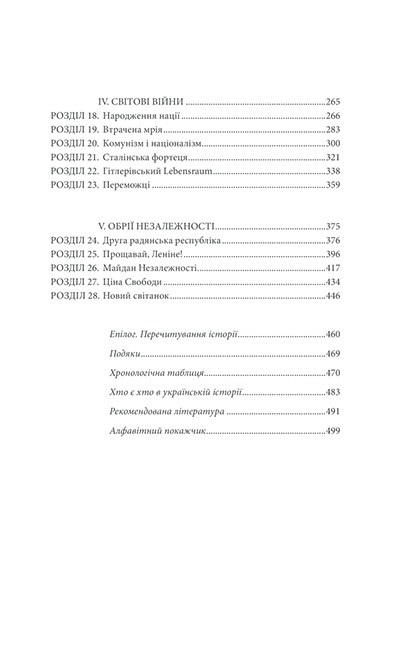 Книга цікаво й доступно розповідає про історію нашої держави від часів Геродота до подій на Сході України сьогодні. Це авторитетне видання допоможе краще зрозуміти події минулого, а через них – і наше сьогодення. Автор фокусує увагу на українцях як найбільшій демографічній групі, а згодом – головній силі, що стояла за створенням сучасної нації. Дізнайтеся, як наші предки «призвали варягів на царювання», як наша країна боролася за право бути незалежною, пройшла крізь часи кріпацтва, комуністичного терору й Голодомору, Другої світової війни та врешті-решт отримала незалежність.