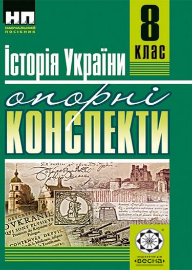 Опорні конспекти та практичні заняття сприятимуть кращому вивченню теоретичних відомостей к курсу “Історія України” у 8 класі, допоможуть підготуватися як до уроків, так і до зовнішнього незалежного оцінювання.