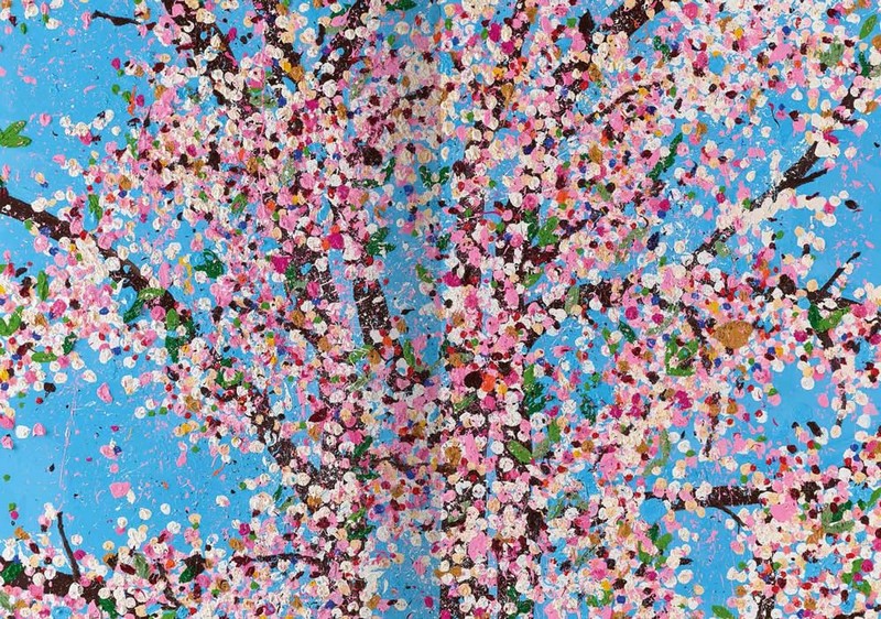 With 107 works, Cherry Blossoms marks a new chapter in Damien Hirst’s career-long exploration of the physical relationship between artist and canvas that began with his Spot Paintings in 1986. Hirst describes his cherry blossoms as “garish and messy and fragile”; the series signals a shift in Hirst’s career away from minimalism and “the imagined mechanical painter” toward a painting that delights in the potential haphazardness of the medium, as well as the artist’s own fallibility as a creator. Using a conceptual approach, Hirst explores questions of beauty, color and excess in these paintings. Rich in color and striking in number, Hirst’s Cherry Blossoms are both an appropriation and a tribute to the pictorial art of the 19th and 20th centuries. Presented at the Fondation Cartier in Paris in 2021, Cherry Blossoms was Damien Hirst’s first museum exhibition in France.