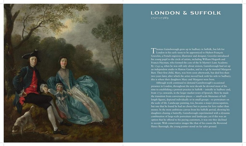 У першому з трьох вступних есе Девід Солкін пише про самого Гейнсборо, розглядаючи його сімейні портрети в контексті попередньої практики - зокрема, фламандського майстра Пітера Пауля Рубенса та британських портретистів від Мері Біл до Джозефа Хаймора. Енн Бермінгем досліджує портрети Гейнсборо його дочок, приділяючи особливу увагу двом завершеним подвійним портретам, написаним з різницею в сім років, і трагічній історії, що випливає з них. Сьюзен Сломан обговорює роль Маргарет як керівника бізнесу свого чоловіка, її вплив на динаміку сім'ї, а отже, на візуальну репрезентацію її членів.
