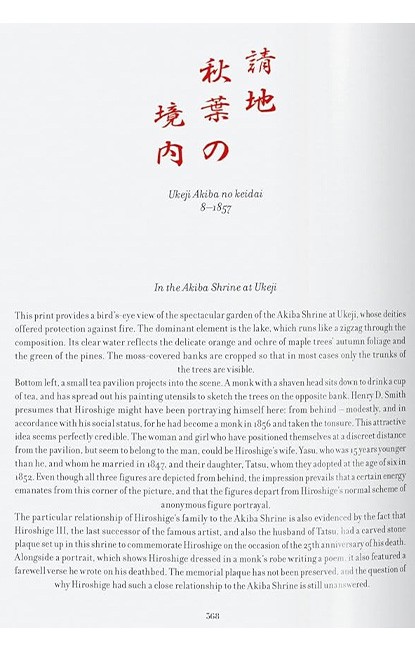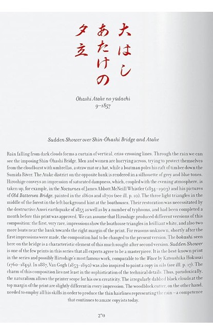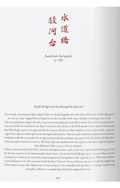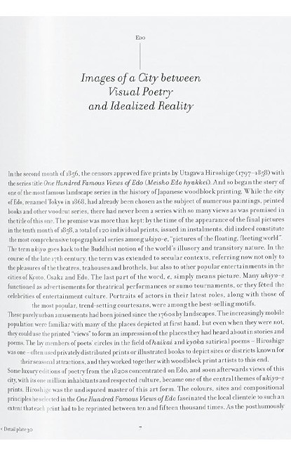 На відміну від часткових публікацій, Hiroshige. One Hundred Famous Views of Edo охоплює весь цикл, відкриваючи масштабність задуму Хіросіґе. Ця книга чудово поєднується з альбомами про Хокусая та інших майстрів укійо-е, формуючи повне бачення японської графіки XIX століття.