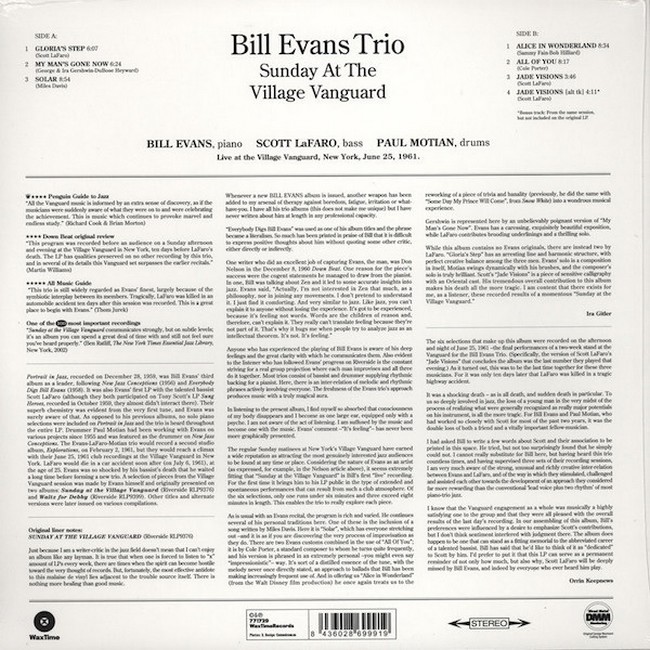 Bill Evans Trio – Sunday At The Village Vanguard (LP, Album, Stereo, Reissue, Vinyl) - фото 2