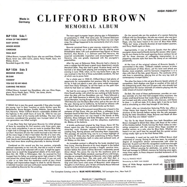Clifford Brown – Memorial Album (LP, Compilation, Vinyl) - фото 2