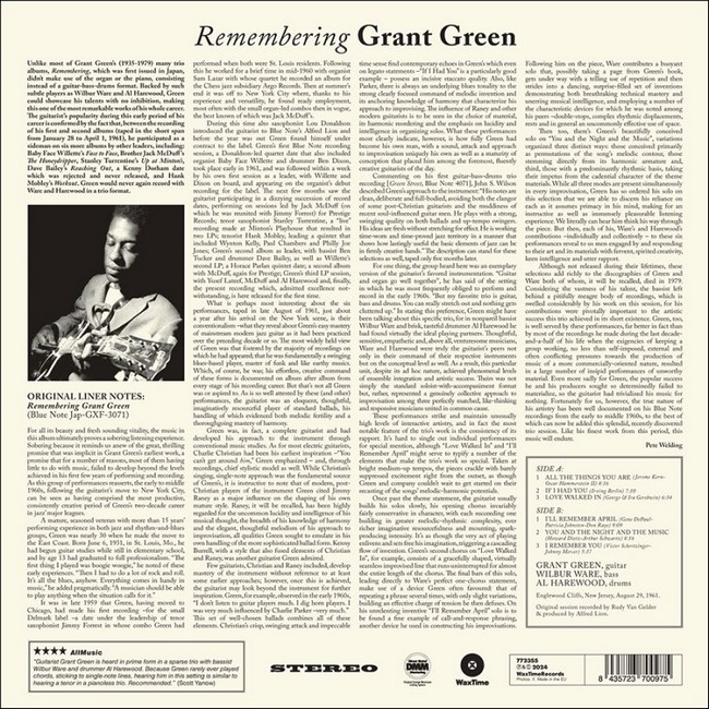 Remembering is an album by American jazz guitarist Grant Green featuring performances recorded in 1961 but not released until 1980 on the Japanese Blue Note label. Green is supported by bassist Wilbur Ware and drummer Al Harewood. The US CD reissue was released in 1998 (renamed Standards) and included an alternate take and an additional track recorded at the same sessions.
