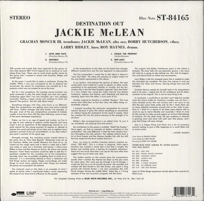 Jackie McLean – Destination... Out! (LP, Album, 180g, Vinyl) 295040