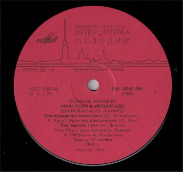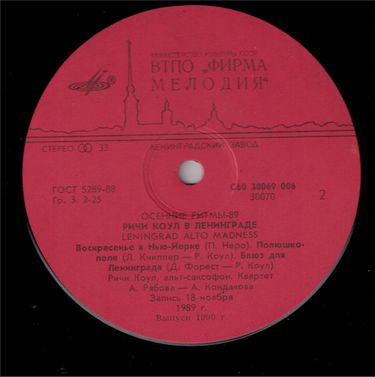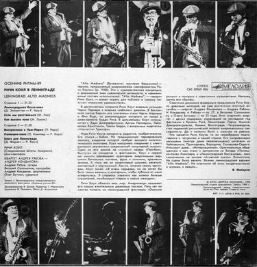 - Назва альбому: Осінні Ритми. Riche Cole In Leningrad. Leningrad Alto Madness