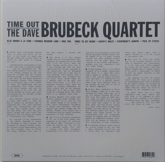 Time Out is a studio album by the American jazz group the Dave Brubeck Quartet, released in 1959 on Columbia Records. Recorded at Columbia's 30th Street Studio in New York City, it is based upon the use of time signatures that were unusual for jazz such as 9