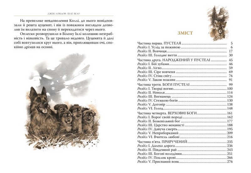 Пригодницька повість класика американської літератури Джека Лондона (1876–1916) описує події часів золотої лихоманки на Алясці. Жорстокий і суворий світ оточує головного героя Біле Ікло, напіввовка-напівсобаку, від самого його народження і загрожує неминучою загибеллю. Лише зустріч із добрим хазяїном допомагає йому знайти себе. Це книжка про силу любові, вірності та відданості, про справжню дружбу між твариною і людиною.