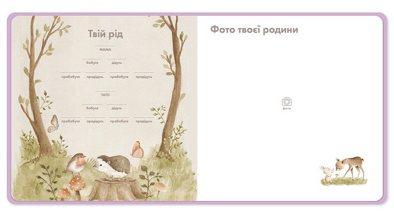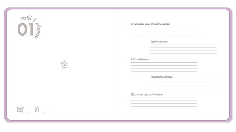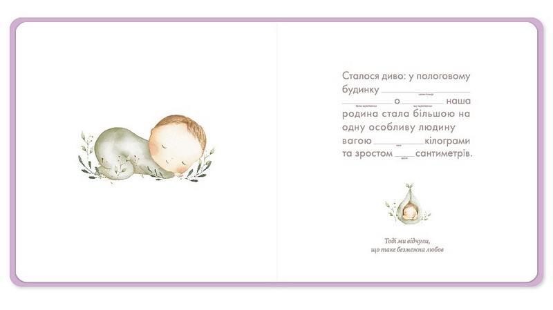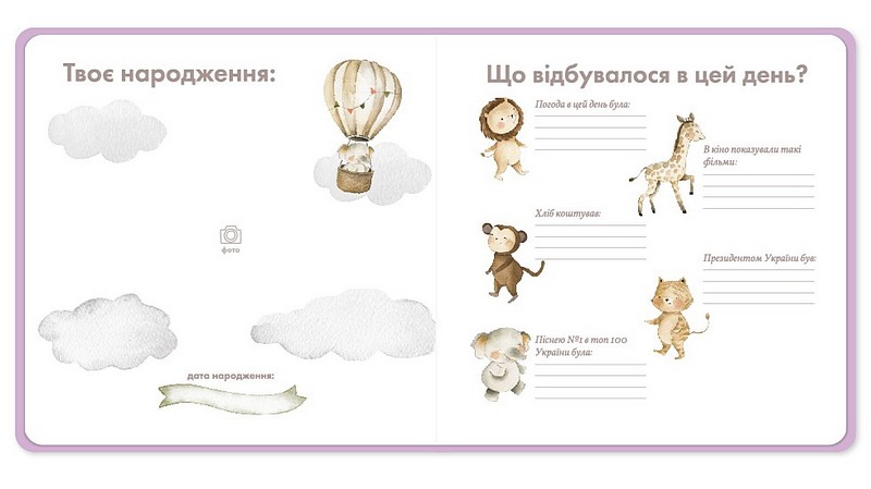 А також сторінку для запису інформації про те, що відбувалося в день народження дитинки (треба буде записати навіть ціну хліба та пісню, яка була ТОП 1 в українських пісенних чартах). Уявляєте, як потім те все переглядати? Цілковите задоволення.