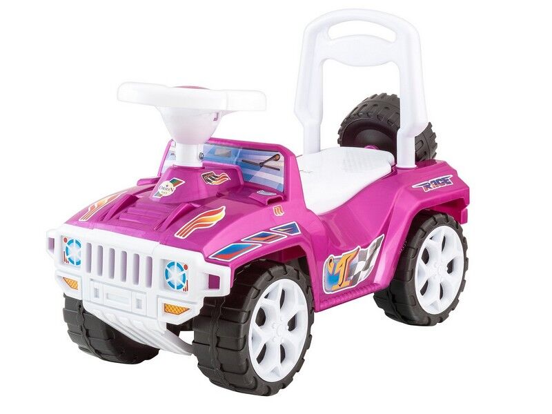 Прекрасна іграшка для Вашого малюка. Красивий і стильний дизайн спеціально розроблений з урахуванням побажань маленьких леді та юних модників. Міні джип в яскравих кольорах і на широких колесах – таке авто має масу шанувальників. Крім того, кермо обладнане клаксоном майже як у справжньої великої машини. А під сидінням передбачено місце для іграшок, які дуже хочеться взяти з собою.