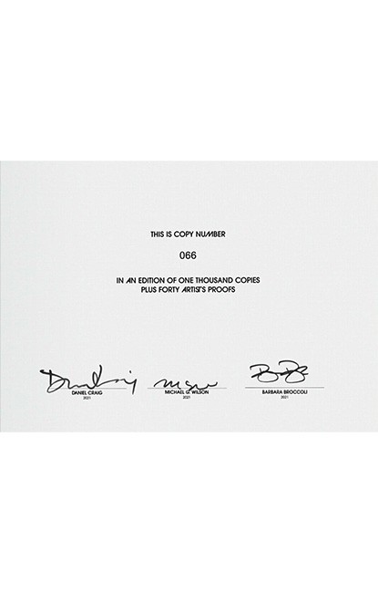 Найповніший опис створення серії фільмів про Джеймса Бонда в художньому виданні, підписаному Деніелом Крейгом та продюсерами 007 Майклом Г. Вілсоном і Барбарою Броколі.
