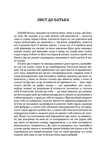 Це видання об’єднує три ключові твори Франца Кафки, письменника, який змінив обличчя світової літератури. «Лист до батька» — відверта сповідь і психологічний документ, що відкриває внутрішній світ автора. «Перевтілення» — одна з найвідоміших новел ХХ століття, історія про людину, яка прокидається у тілі комахи, але водночас — це алегорія відчуження, страху і самотності. «Замок» — роман, де світ постає як абсурдний лабіринт бюрократії, в якому людина шукає сенс і свободу.
