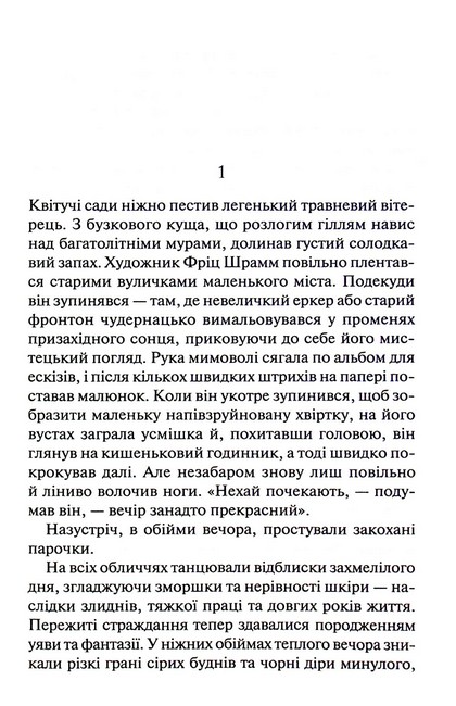 Це психологічна проза з філософськими нотами — класичний Ремарк: тихий біль, відчуття втраченого часу й ніжна, тиха любов, що живе попри все. Атмосфера книги меланхолійна, але водночас світла, наповнена спокоєм і роздумами.