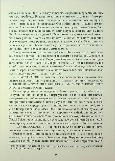 Якщо вам близькі твори Гарпера Лі, Джона Стейнбека чи Курта Воннегута, то "Молитва за Овена Міні" стане для вас відкриттям. Це книга, яка зачіпає душу і довго не відпускає.
