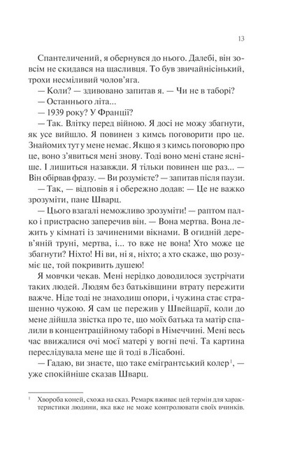 Це роман про війну і любов, про страх і надію, про силу людського серця, яке здатне боротися навіть тоді, коли весь світ занурений у хаос. Ремарк майстерно поєднує драму і ніжність, створюючи історію, що пронизує до кісток.