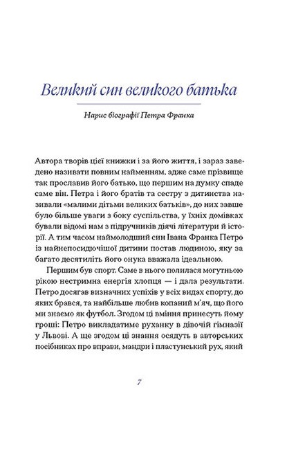 Петро Франко — постать, яка довгий час залишалася в тіні свого легендарного батька Івана Франка. Та цей том «Вибране» доводить: його власний голос вартий особливої уваги. Перед нами постає письменник, педагог, військовий і громадський діяч, чия літературна спадщина відкриває ще одну грань української культури початку ХХ століття. Це тексти, які дихають щирістю, спостережливістю та глибиною думки.