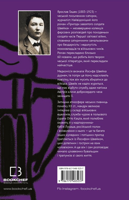 Ярослав Гашек (1883-1923) — чеський письменник-сатирик, журналіст. Найвідоміший його роман «Пригоди завзятого солдата Швейка» — незавершена колекція фарсових розповідей про походеньки солдата часів Першої світової війни, сповнена сатиричними замальовками про бездарність і недолугість можновладців та військових чинів. Роман перекладено близько 60 мовами, що робить його твором чеської літератури, який перекладали найчастіше.