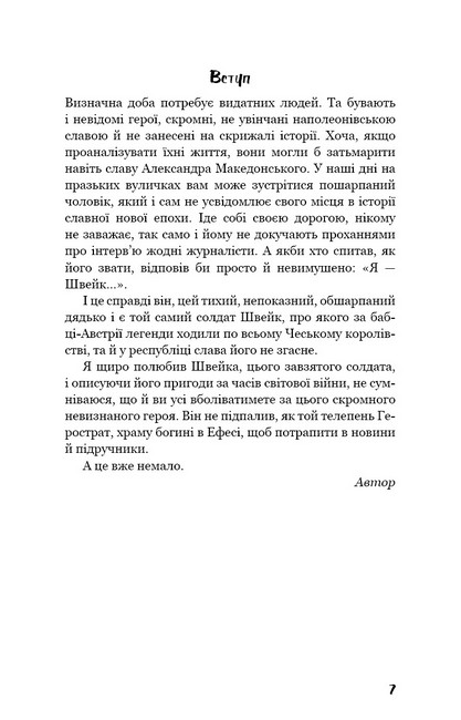 «Пригоди завзятого солдата Швейка» — це не лише смішні анекдоти й пригоди, а й сильний протест проти війни та абсурдності системи. У цій книзі поєднані комічні сцени, іронія та гострі спостереження за людською природою. Видання вирізняється охайною поліграфією та адаптованим перекладом, який зберігає атмосферу оригіналу.