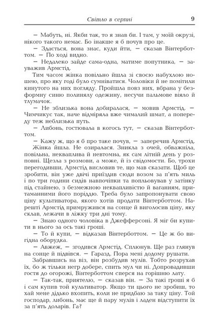«Світло в серпні» – це не просто роман для читання, а справжнє літературне переживання. Фолкнер майстерно поєднує експериментальні техніки письма з глибиною психологічного аналізу персонажів, створюючи унікальний стиль, який захоплює і залишає слід у свідомості. Книга стане прикрасою будь-якої бібліотеки, подарунком для тих, хто цінує класичну прозу та інтелектуальну глибину. Вона відкриває світ, де моральні питання і внутрішні боротьби персонажів стають відображенням складності людської природи.