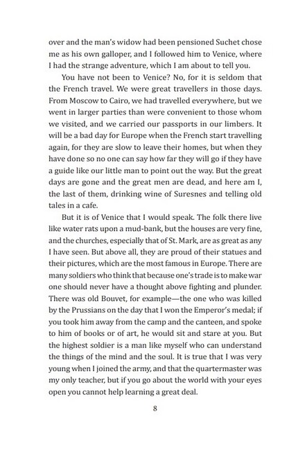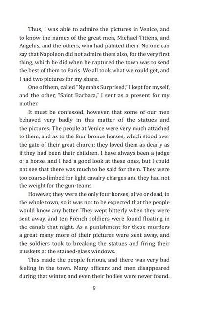 The Adventures of Gerard is a collection of stories Arthur Conan Doyle (1859—1930) about Brigadier Gerard, a soldier in the Napoleonic army. Not only should the readers of these amazing stories admire the dexterity of the brave brigadier but also learn many interesting facts about the Napoleonic Wars time.
