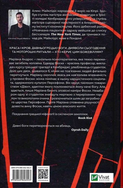 Маріана Андрос — геніальна психотерапевтка, яка тяжко переживає загибель чоловіка. Едвард Фоска — красень професор, викладач курсу грецької трагедії в Кембриджі, улюбленець студенток. Долі цих двох, здавалося б, нічим не пов’язаних людей, фатально перетнуться. Маріану охоплює якась аж нав’язлива впевненість у провині Фоски: жінка помічає в ньому нарцистичного соціопата, одержимого культом Персефони. Він керує таємним товариством «Діви», адептки якого поклоняються йому наче богу. Але, здається, лише Маріана бачить зловісні наміри Фоски. Незабаром одну зі студенток знайдуть мертвою з перерізаним горлом та виколотими очима. І розпочнеться шлях до загробного царства Персефони.