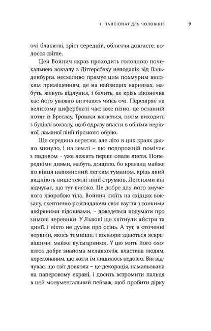 Осінь 1913 року. Львівський студент Мечислав Войнич приїжджає на сілезький курорт Ґерберсдорф лікуватися від сухот. Не минає і дня від його прибуття, як в Пансіонаті для чоловіків, де він оселився, стається нещастя. І поки сусіди Мечислава вдають, що нічого не відбувається, ходять в гори, п’ють наливку й ведуть інтелектуальні бесіди про світоустрій і жінок, невидимі сили мають свої справи. Ольга Токарчук грається з жанром жахів, але звертається до вже звичних для себе тем: природа і цивілізація, сила і слабкість, чоловіче і жіноче. І до непевного, складного, тривожного простору поміж двома протилежностями.