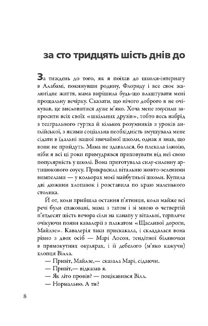 «В пошуках Аляски» — це більше, ніж просто підлітковий роман. Це щемка, пронизлива історія про те, як ми шукаємо себе, зачаровуємось людьми, яких не розуміємо до кінця, і намагаємося пережити біль, що перевертає світ. Майлз — сором’язливий хлопець, який приїжджає до школи-інтернату, аби знайти своє «велике можливо». Там він зустрічає Аляску Янг — яскраву, непередбачувану, повну таємниць. Із цієї миті все змінюється. І світ, і він сам.