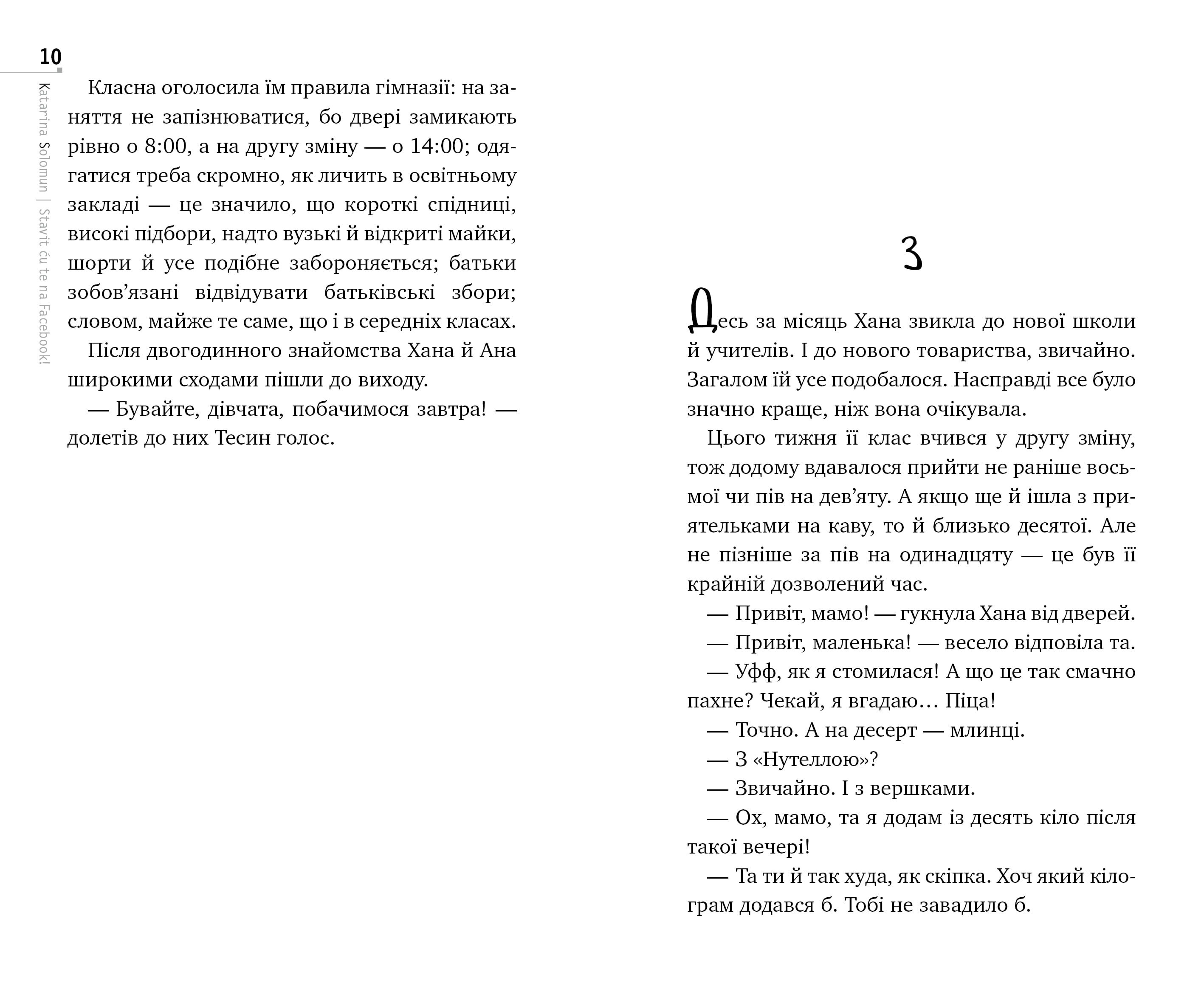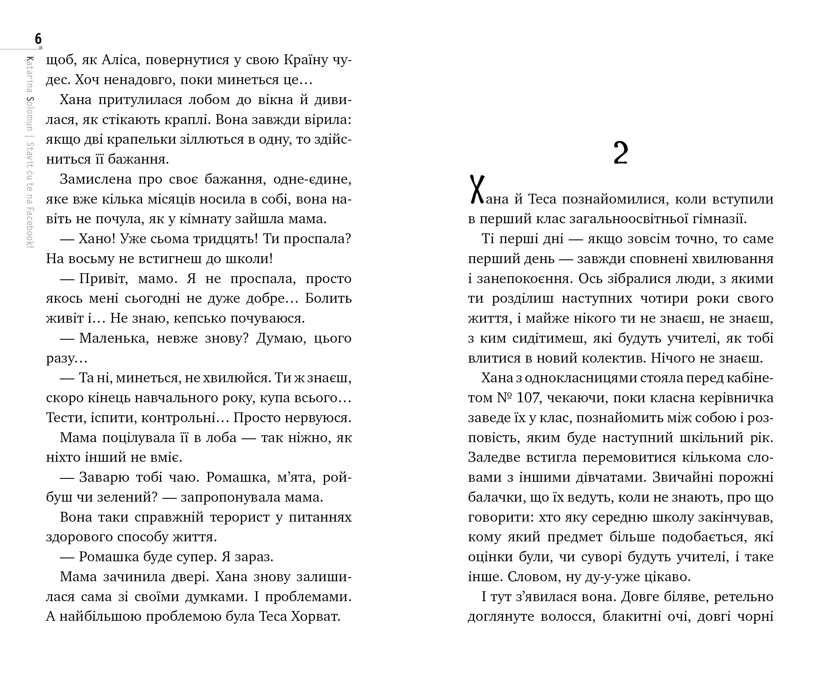Хана й Ґонти познайомилися, коли вступили в гімназію. Та від самого початку в їхніх відносинах щось пішло не так: дві героїні йдуть у нове життя різними шляхами... Перше кохання, ревнощі й заборонені прийоми — вісь ключові складові оповіді, що не дають відірватися від читання ні на мить. А поряд іще й батька — із задавненими комплексами та різними поглядами на життя: подорослішати мають не лише діти.
