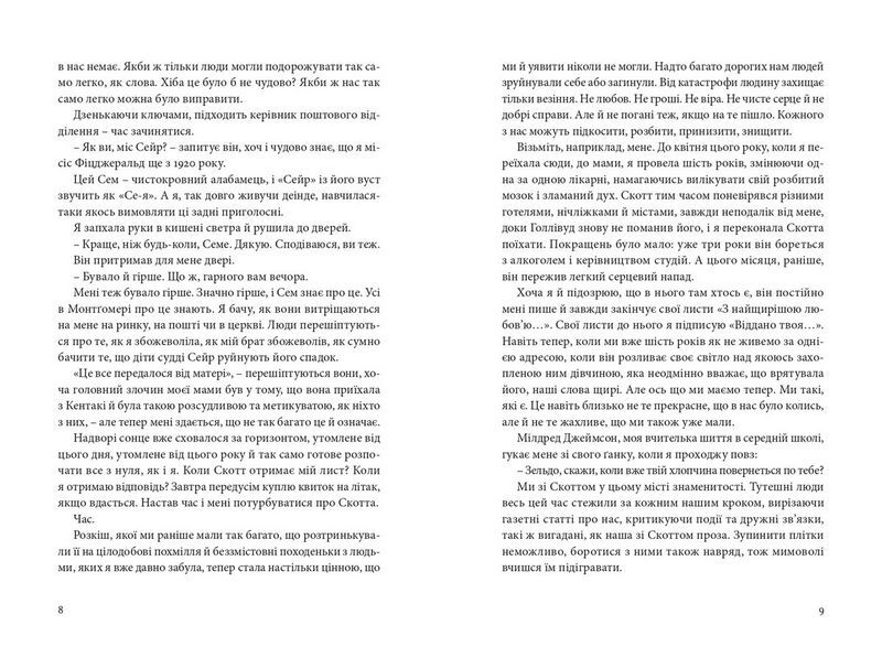 Усі ми знаємо про історію бурхливого кохання Френсіса Скотта Фіцджеральда й Зельди Сейр, про атмосферу нестримних і бурхливих 20–30-х років в Америці й Парижі, про покоління джазу й богемне товариство Фіцджеральдів, Гемінґвея, Ґертруди Стайн, Вірджинії Вулф. Але знаємо про це переважно з розповідей і книжок чоловіків. Роман «Зельда» пропонує іншу перспективу: це історія життя Зельди, яка закохалася в Скотта й разом із ним творила ту епоху. Написана чудовим легким стилем, ця драматична й заснована на документальних фактах оповідь відкриває нам захопливий, але й суперечливий світ слави, успіху, амбіцій і водночас невпевненості в собі, любові та зрад, нестримного драйву і хвороби. Нарешті Зельда Фіцджеральд здобуває власний голос і виходить з тіні свого чоловіка на перший план історії. Вона на це заслужила.