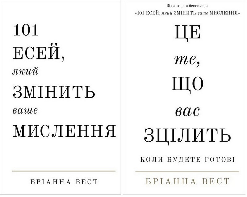 101 есей, який змінить ваше мисленняБріанна Вест не повчатиме вас, яким саме чином уникнути проблем, досягти успіху, стати щасливішими тощо. Вона просто розкаже про те, що ви відчуваєте, пояснить, чому ви це відчуваєте, й підштовхне до правильного рішення, яке буде виключно вашим. Ця книга-бестселер містить 101 короткий текст, який нагадає про важливе у вашому житті, допоможе здобути емоційне благополуччя й реалізувати потенціал, а ще замінить добрий десяток книг із психології та саморозвитку.