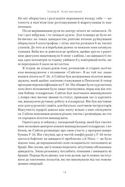 Про автора:Гезард Лі — пілот Військово-повітряних сил США, учасник війни в Афганістані. 17 років присвятив військовій авіації, керував винищувачами F-16 і F-35, згодом розробляв методики підготовки пілотів сучасних винищувачів. У 2019 році звільнився зі служби і заснував власний бізнес Hasard X. Консультує компанії рівня United Airlines і Google.