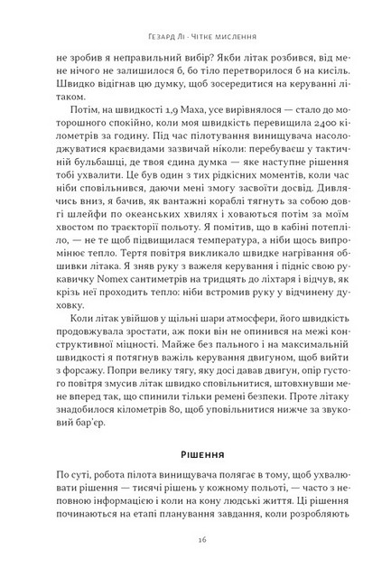 Автор цієї книжки: колишній пілот стелс-винищувача – навчання на цю посаду вважається одним із найскладніших у світі. Під час цього процесу Гезард Лі навчився приймати чимало рішень, адже того потребувала його професія: за лічені секунди може трапитися що завгодно і за цей проміжок часу потрібно прийти до того висновку, який буде найкращим.