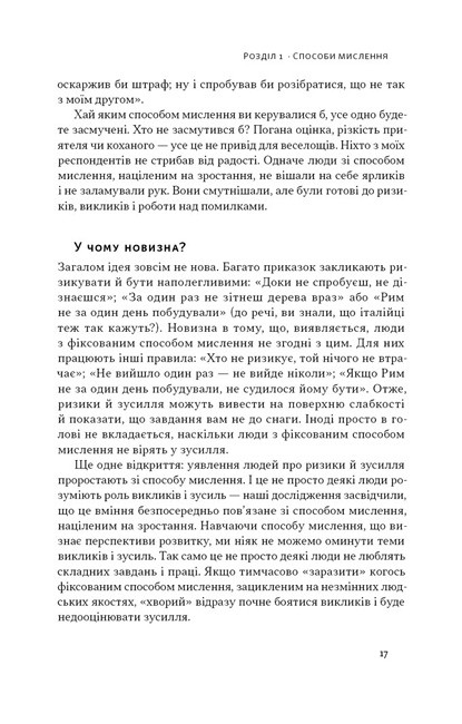 Книжка «Mindset. Змініть спосіб мислення і розкрийте свій потенціал» професорки Стенфордського університету Керол Двек стала результатом багаторічної праці професорки психології Керол Двек. За роки своєї наукової діяльності вона відкрила простий, але досить потужний феномен, завдяки якому людям удається реалізувати власний потенціал.