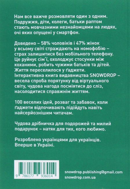 Інтерактивна книга видавництва Snowdrop – весела спроба порятунку від віртуального світу, чудова нагода посміятися до сліз, насолодитися справжнім життям.