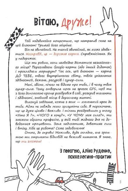 Виконуючи завдання, щоразу робитимеш маленький крок до тебе справжнього (справжньої). Зрозумієш, яка професія тобі підходить найбільше. Це ніби GPS, з допомогою якого ти знайдеш заняття до душі і місце в дорослому житті.