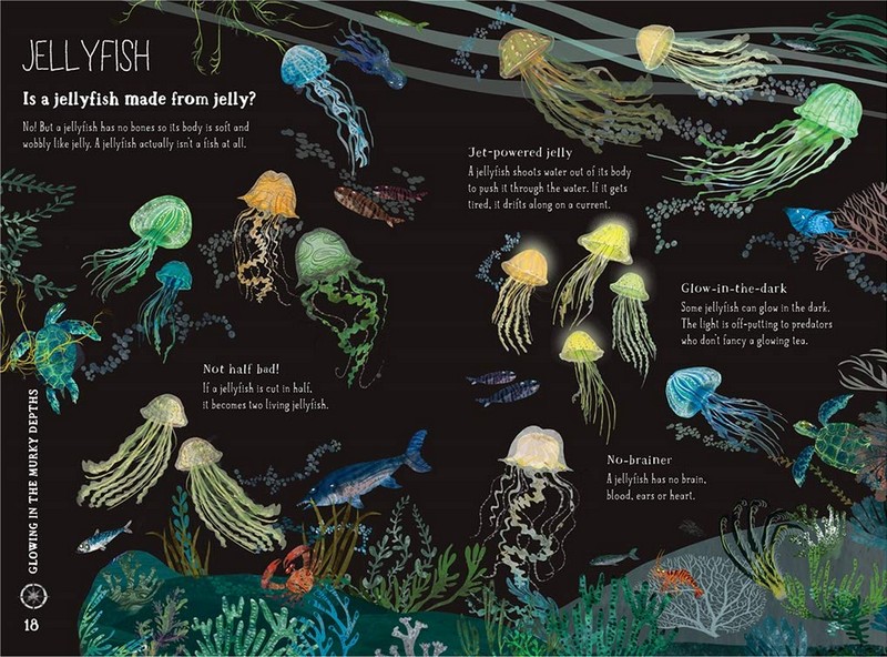 Нова чудова книжка Юваля Зоммера дає відповіді на ці та багато інших рибних запитань. На його чудернацьких ілюстраціях зображені всі види слизьких, мерехтливих і дивовижних морських мешканців, зокрема морські черепахи, кити, акули, скати та морські коники. Балакуча, кумедна та сповнена дивовижних фактів, ця книжка неодмінно сподобається дітям, які прагнуть дізнатися про найцікавіших створінь з морських глибин.