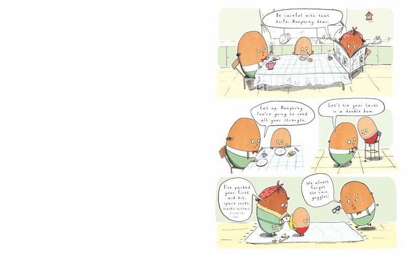 Цей графічний роман для середнього класу розповідає історію про Хамфрі - яйце з дуже турботливими батьками; «Ніколи не бігай, не стрибай і НІКОЛИ НІКОЛИ НІКОЛИ не сиди на стіні. Пам'ятаєш, що сталося з твоїм дядьком...»