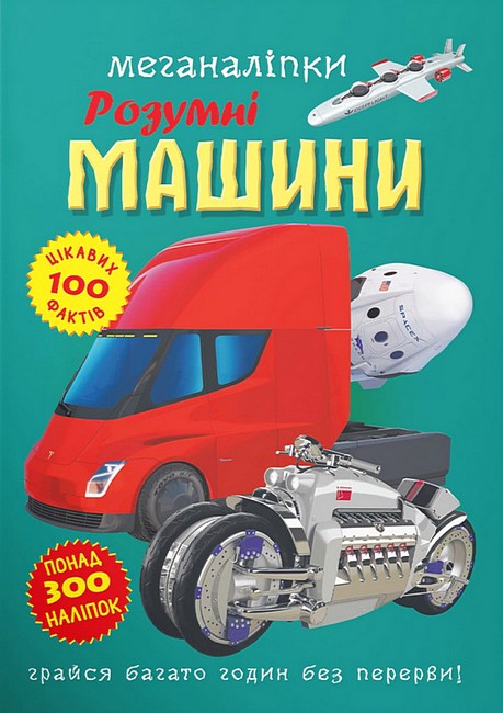 Сьогодні важко обійтися без техніки. Вона допомагає зводити будинки й прокладати дороги, перевозити вантажі й подорожувати світом. Хутчіш зазирни в книжку, щоб дізнатися найцікавіше про різні машини! Фантазуй, створюючи власний світ транспорту! Тобі стануть у пригоді понад 300 меганаліпок. Використовуй як підказку зазначені поруч із ними номери сторінок.