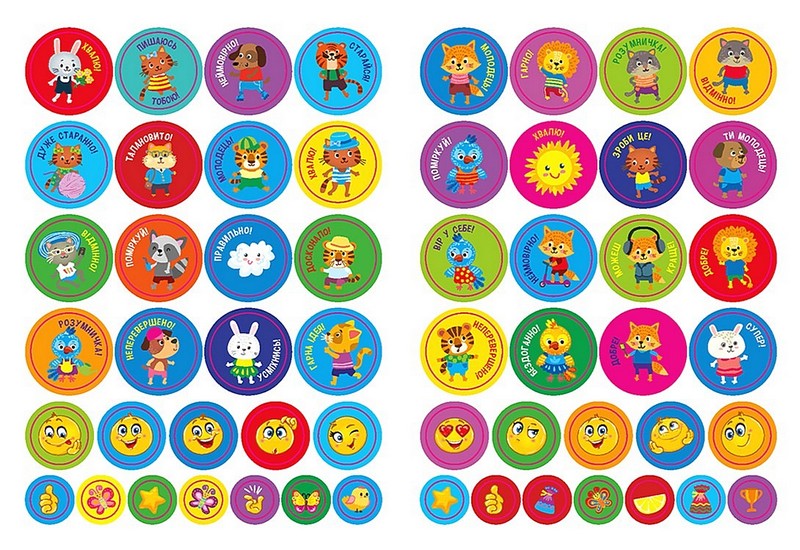 Серія «Мотивувальні наліпки» містить понад 100 яскравих стікерів, які можна використовувати як для навчання, так і під час ігор. Наліпки мають привабливий дизайн і містять різні мотивувальні фрази, символи успіху й емодзі, якими можна відзначити персональні досягнення дитини, підтримати її зусилля, підвищити рівень самооцінки й заохотити до подальших перемог!