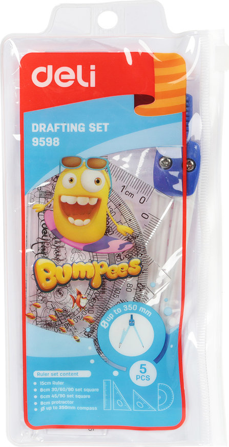 Набір для креслення Deli 9598. 5 предметів у багаторазовому пеналі