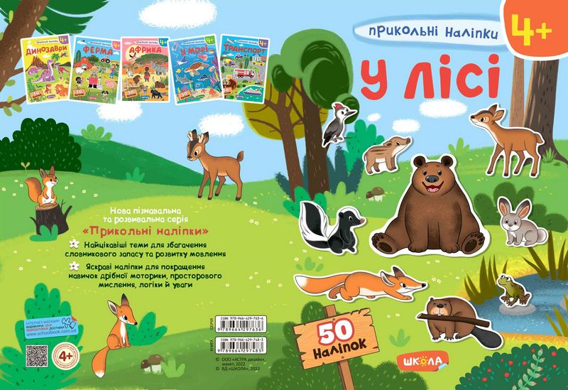 Зошити «Прикольні наліпки» для дітей від чотирьох років розроблені для збагачення словникового запасу дитини, розвитку зорової пам’яті та образного мислення. Барвисті, приємні на дотик наліпки сподобаються навіть найвибагливішим малюкам. Кожен примірник містить 50 наліпок та спеціальні сторінки для наклеювання із тематичним зображенням.