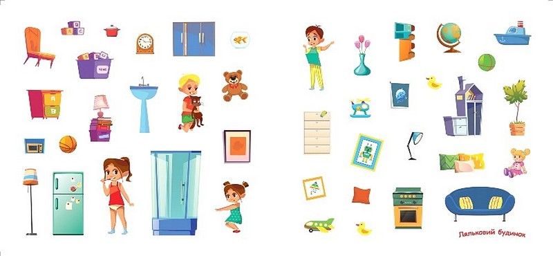 У книжці «Ляльковий будинок» вашому малюкові запропоновано яскраві багаторазові наліпки, за допомогою яких можна гратися, створювати різноманітні сюжети, а потім переклеювати в інші місця. Книжки цієї серії спрямовані на розвиток фантазії, уваги, дрібної моторики.