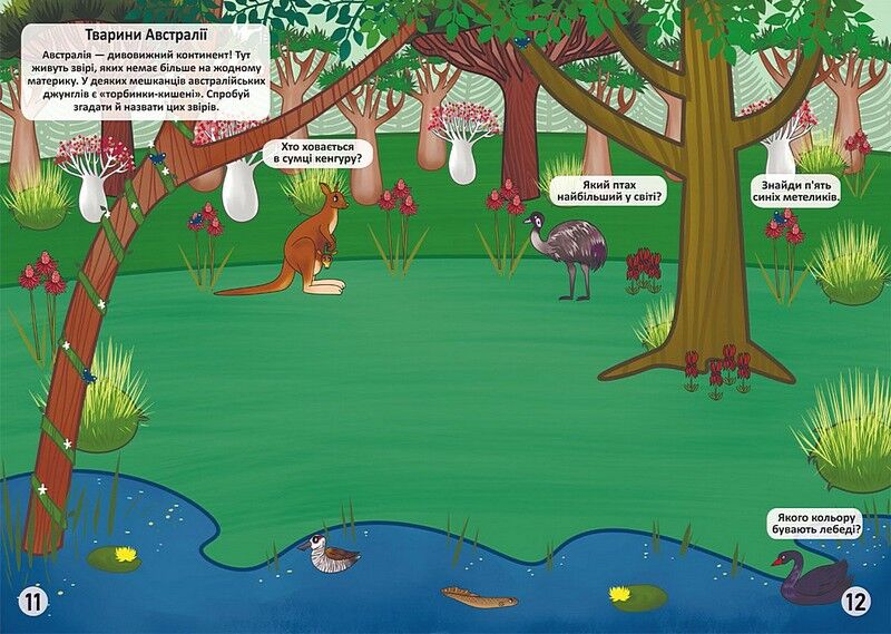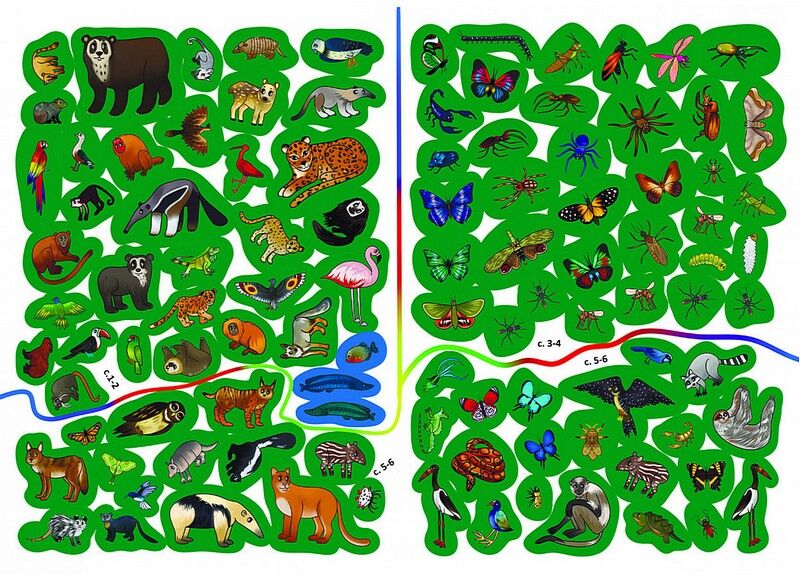 Джунглі приховують від нас багато загадок. Мешканці цих лісів — звірі, птахи та комахи — вражають своїми повадками й незвичайним зовнішнім виглядом. Хутчіш зазирни в книжку, щоб дізнатися про диких тварин усе найцікавіше! Фантазуй, створюючи неймовірно барвистий світ джунглів! Тобі стануть у пригоді понад 300 меганаліпок! Використовуй як підказку зазначені поруч з ними номери сторінок.