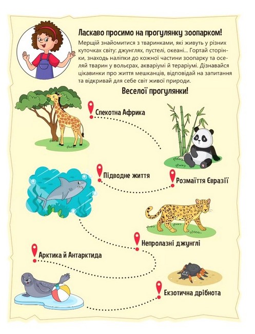 Завдяки стікербуку маленькі читачі запам’ятають назви тварин і рослин, розвинуть увагу, потренують дрібну моторику та логічне мислення.