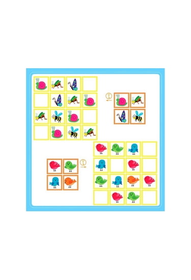 Завдання призначені для діток з 4 років. Замість звичних в судоку цифр використані картинки дитячої тематики та наклейки. Такі логічні ігри користуються популярністю як у хлопчиків, так і у дівчаток.