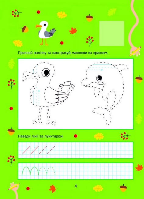 Із цією книжкою маленькі розумахи креслитимуть прості лінії, проходитимуть лабіринти й навчаться орієнтуватися у просторі. Цікаві завдання та яскраві малюнки допоможуть малечі розвинути уяву та асоціативну пам’ять, а разом із наліпками дітлахи потренують дрібну моторику. Веселих занять!