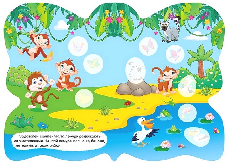 На сторінках даної книги малюки зустрінуть улюблених тваринок і за допомогою наліпок поринуть разом із ними в дивовижні пригоди. Також яскраві наліпки допоможуть дитині потренувати дрібну моторику, розвинути увагу, уяву, логічне мислення та посидючість.